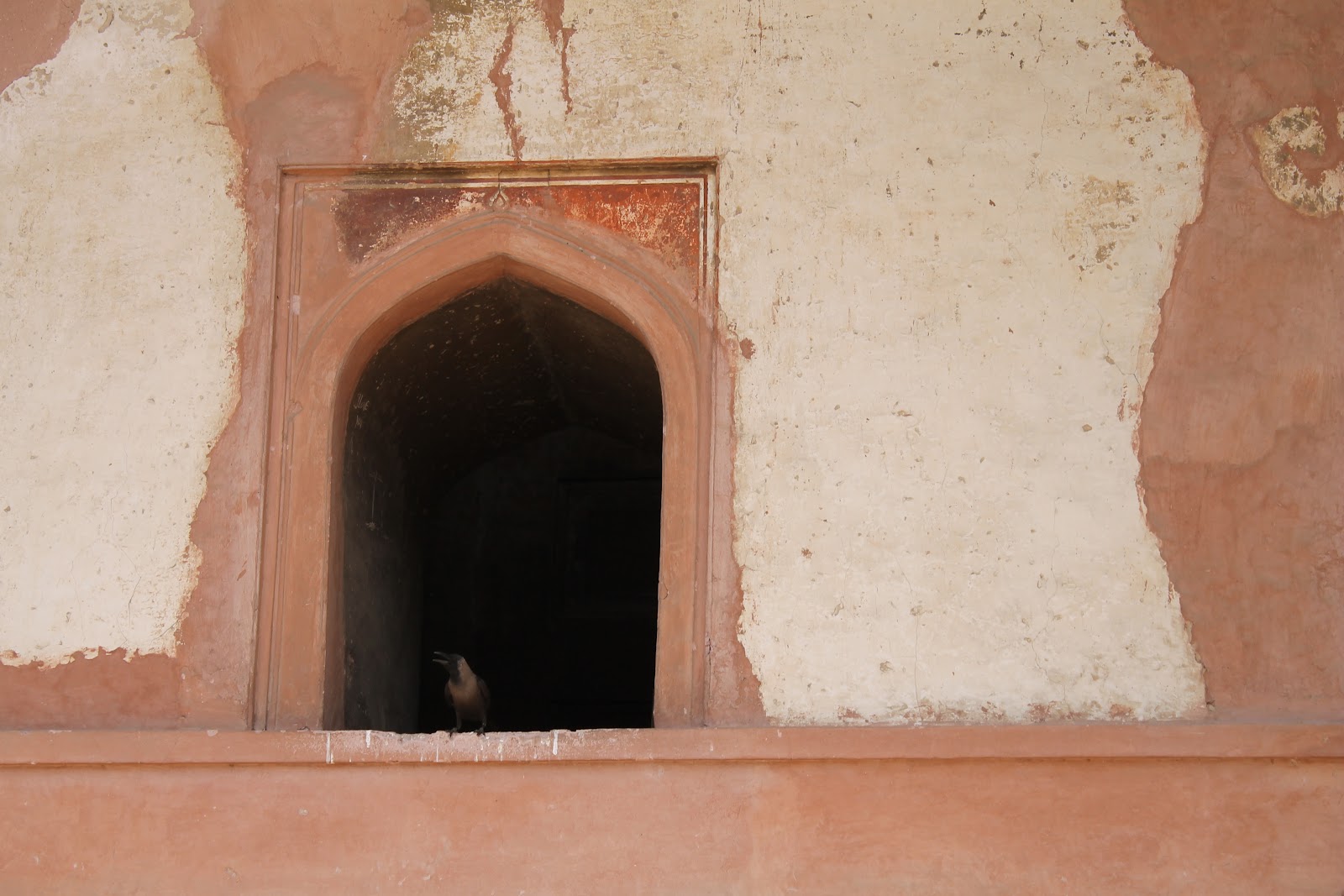 right outside the cart hanging on a nail and is swinging with the cold Delhi